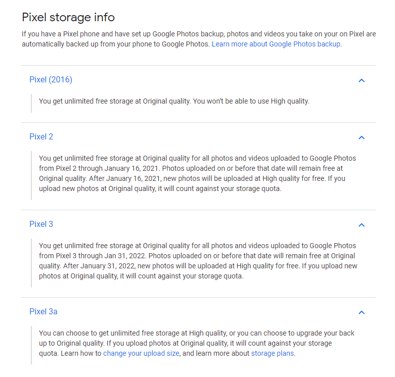 Google doesn’t offer ‘truly unlimited’ storage, except for the Pixel 1 and Pixel 1 XL. For instance, Pixel 3 and 3 XL users won’t be able to use the freebie after January 31, 2022. They can continue to use the high quality option afterward.