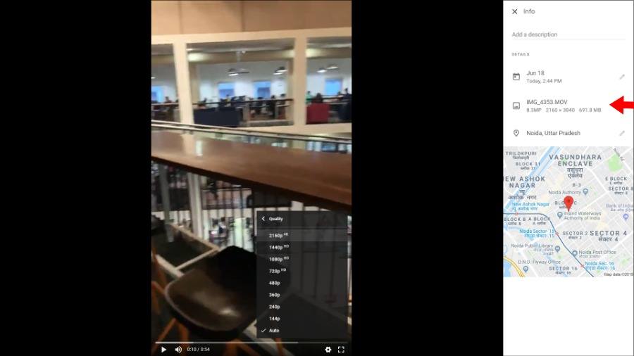 For your mental satisfaction, I also test Google Photos backup with iPhone. I uploaded a 650MB 4K 60fps video shot on an iPhone XS. In this case as well, there was no degradation in the quality of the video after it was uploaded.