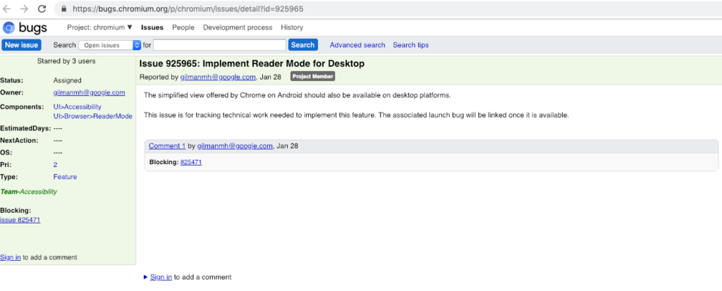 In a bug report published on Chromium.org, Reading Mode was mentioned that would work on different platforms like macOS, Linux, and Windows. As of now, the Reading Mode feature is only available Chrome for Android and Google wants to make this feature available on all the platforms.