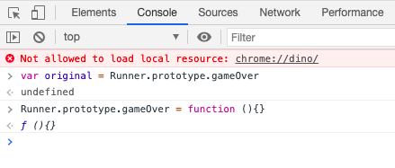Since you had already entered the code to hack the Dinosaur game, whenever you hit an object, the command “Runner.prototype.gameOver()” is called. This code replaces the gameOver function with an empty function.