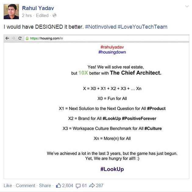 Housing.com Board on a unanimous decision had recently sacked then CEO Rahul Yadav citing his ludicrous behaviour towards the employees, investors and the media as the main reasons. However, this could be a real hack or a prank. Nothing can be said as of now.