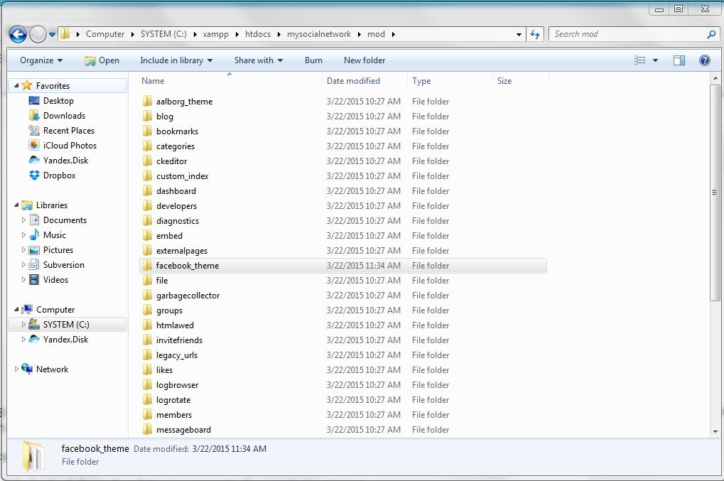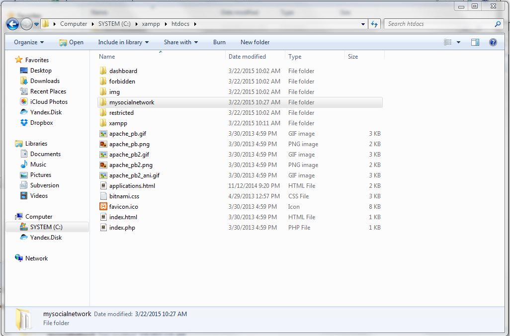 Now open your XAMPP directory and move to htdocs folder and copy the above mysocialnetwork folder here.