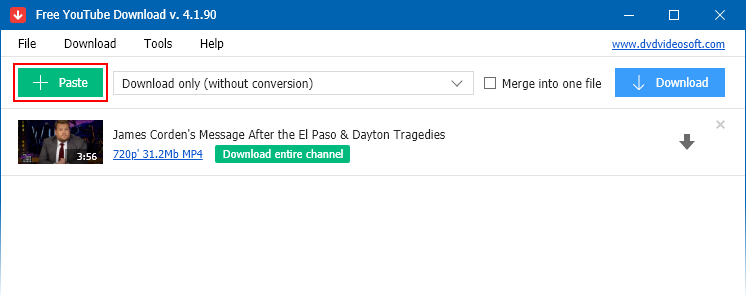 6. Click ‘Paste’ (the application automatically detects the copied URL)