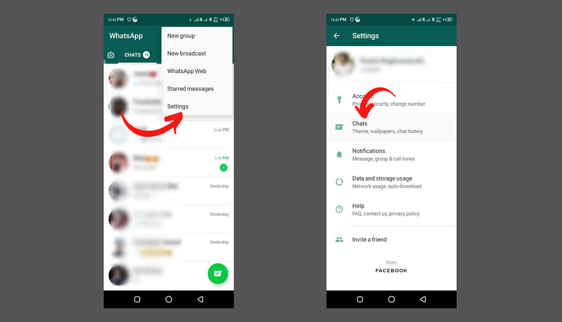 Tap the settings option from the drop-down menu and tap the “Chats” option from the next screen