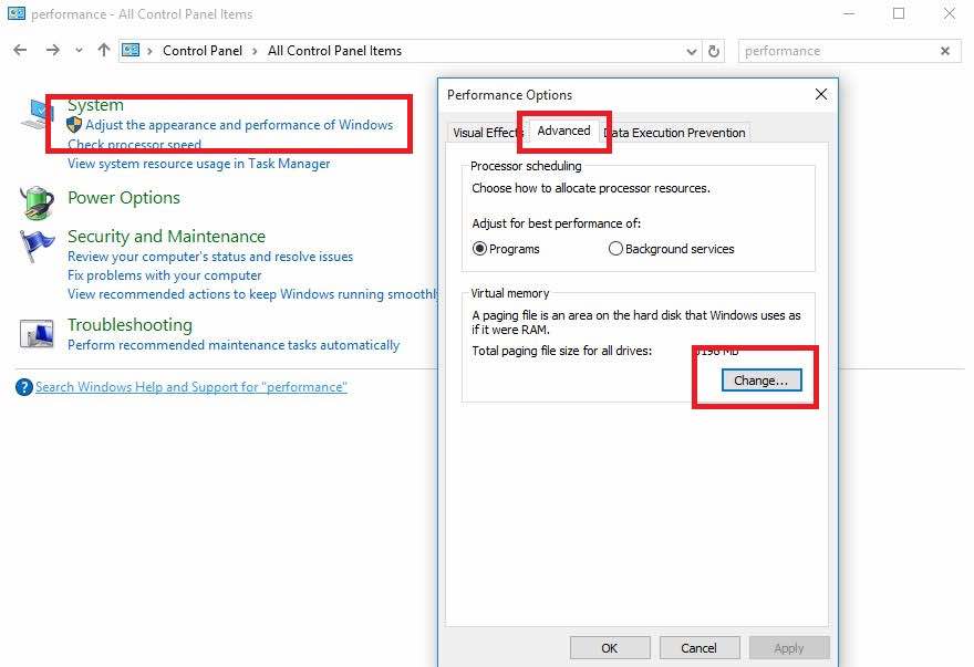 You need to change the default settings for the Page File control in Windows 10 from System Managed to Manual format. Here you can change the page file memory’s file and maximum size – based upon the RAM on your PC.