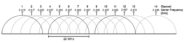 But as you might have observed in the picture above Channels 1, 6 & 11 are spaced far enough so as to not overlap with each other and are as such the best channels for usage along with a Wi-Fi network.