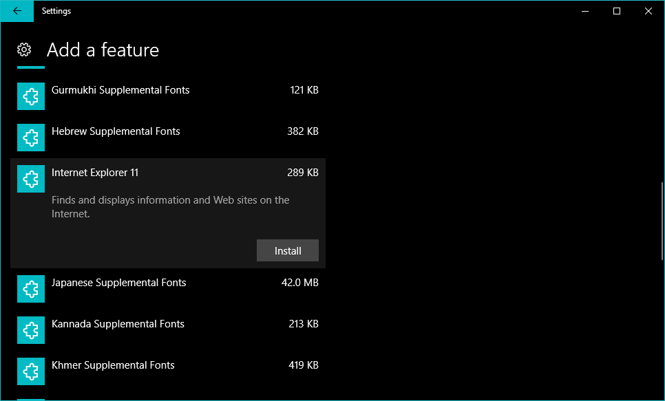 to add IE 11 as an optional feature in Windows 10.