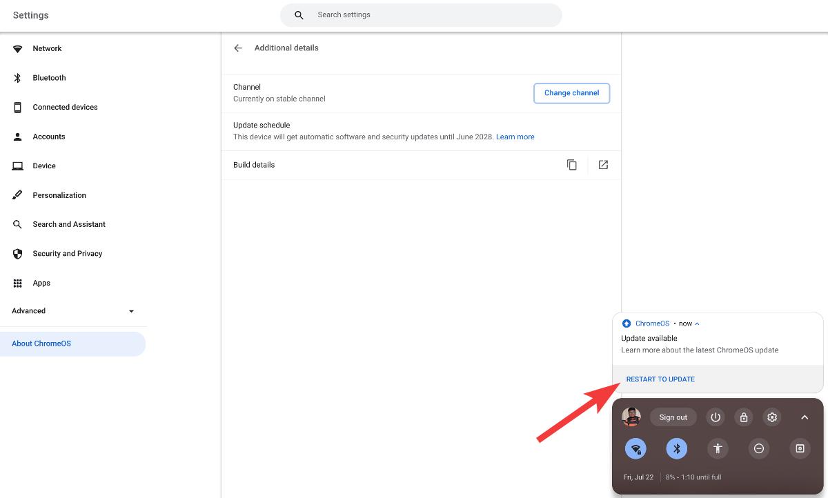 Before we begin, here’s a quick and interesting fact. Unlike Windows, Chrome OS doesn’t annoy you with update pop-ups and automatic restarts. If auto-update is enabled, Chrome OS will check for updates and download and install them the next time you restart. Pretty cool, right?
