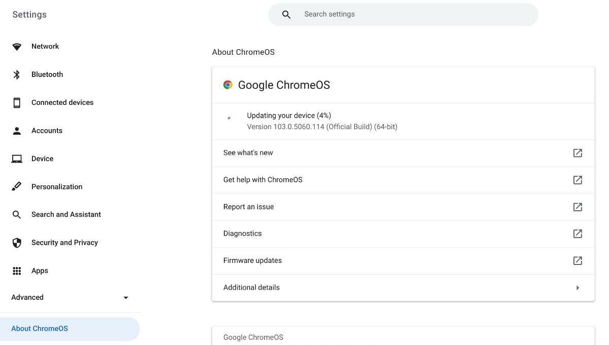 According to Google’s updated policy, Chromebooks launched in and after 2020 will receive eight years of major and security updates. However, if you’re unsure when your Chromebook was launched, you can check the update schedule by going to About ChromeOS > Additional Details. Here’s what it will look like.