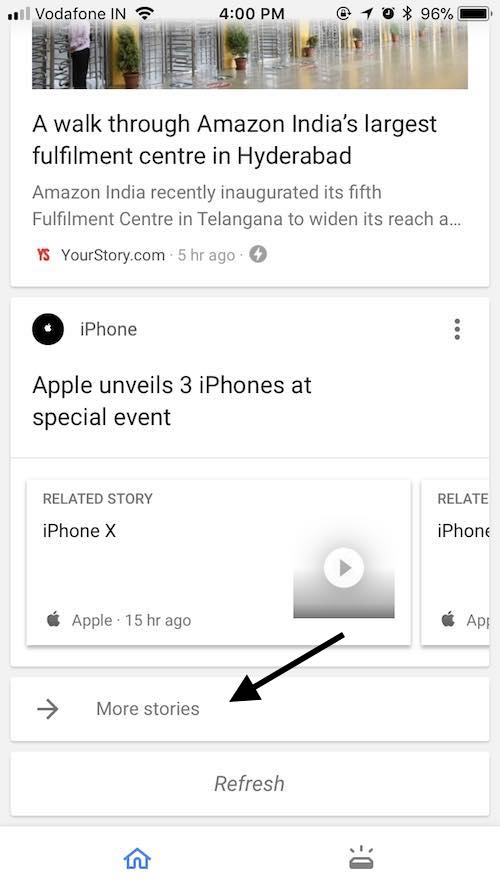 At the end of the Feed, there’s an option to read More stories. It shows more stories based on your interest.