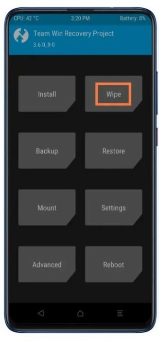 3. If you are switching ROMs, then you need to format your device. Once the recovery mode opens, select Wipe > Advanced Wipe . Enable the Dalvik/ART cache and Data options. Then Swipe at the bottom of the screen for a wipe.
