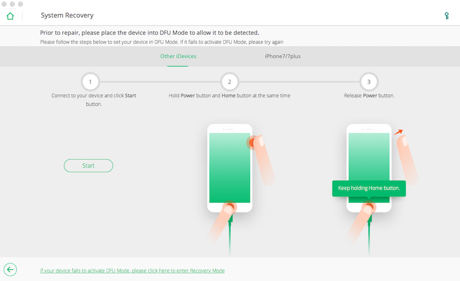 Please note that after using this option, your device will be updated to the latest iOS version. If the device is jailbroken, it’ll become non-jailbroken. To do so, press the Start button on system recovery screen and read the instructions carefully. After pressing the required combination of buttons, the software will detect your device model and offer the right firmware. After downloading the firmware, iSkysoft will attempt to fix the iPhone.