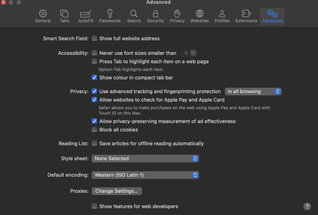 - Go to the Advanced pane and check the box labeled “Use advanced tracking and fingerprint protection.”