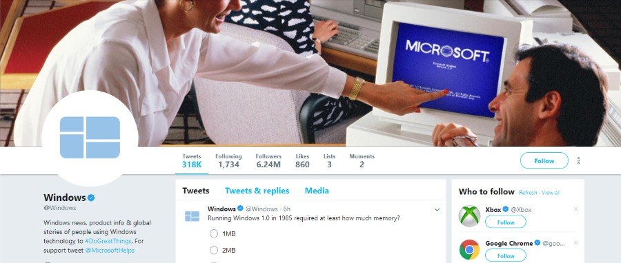 Microsoft’s social media moderators are hard at work replying to most of the comments made on both the platforms, making good use of 1980s lingos.