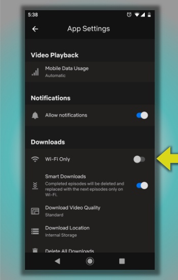 If you’re on a cellular internet connection and unable to download Netflix movies and TV shows on your mobile device, then there could be another reason. Go to the App Setting page to make sure that the ‘WiFi Only’ option is disabled.