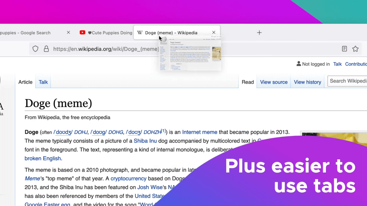 “We redesigned these tabs so that they floated neatly, and we added the visual indicators, like blocking autoplay videos until you’re ready to visit that tab. We detached the tab from the browser to invite you to move, rearrange and pull out tabs into a new window to suit your flow, and organize them, so they’re easier for you to find.”