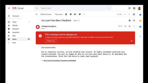 Google has not only redesigned the look but also revamped its security by adding an ability to detect potentially harmful emails with new security features. Gmail web now displays a risk warning text – “This message seems dangerous” and offer a ‘Delete Now’ button. It will prevent users from clicking malicious links in messages and phishing activities.
