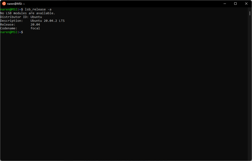 The WSL 2 Ubuntu instance is now ready for use.
