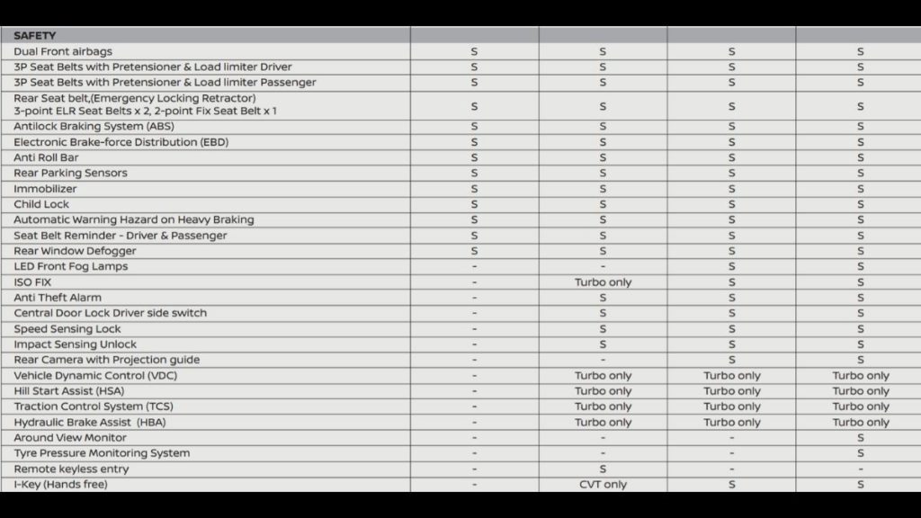 Nissan Magnite has all the necessary safety features that are available in the vehicles in this segment.