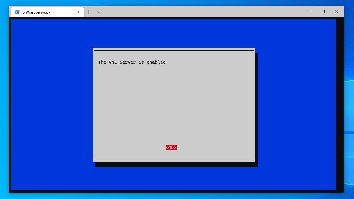 - Find and navigate to an option that reads VNC and press enter. In another in-window pop-up that appears, click on enable and you’ll see this.