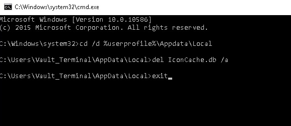 - Execute the following commands to delete the IconsCache.db file.
