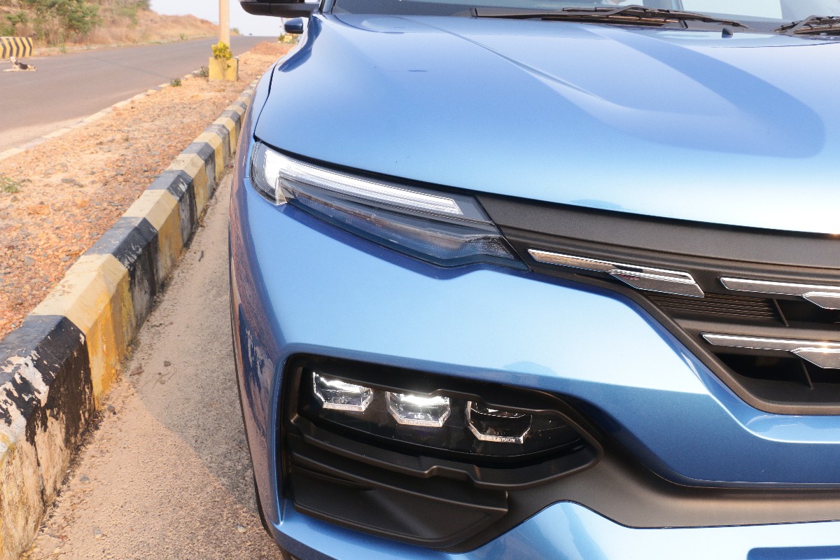A crucial victory for Renault is the looks of the Kiger as that is half the battle won. It looks different from other subcompact SUVs and has its own style which appeals to us and also a lot of the public judging by the reactions it got on our test drive. Finished in this blue color, the Kiger looks very good and also has a youthful flair along with a sense of style — it is not shy at all. It is, however, less of a proper SUV in terms of lacking the typical boxy appeal. The lines are curvier and it is more like a crossover.