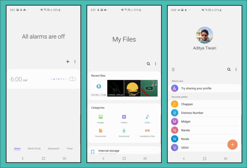 Additionally, Samsung has redesigned many of its System apps. So, all of the essential options are now well within reach of your fingers. For instance, in the Clock app, and the My Files app, Contacts, and so on. Thankfully, the company has even fixed the crappy Camera app and now it feels much better to use.