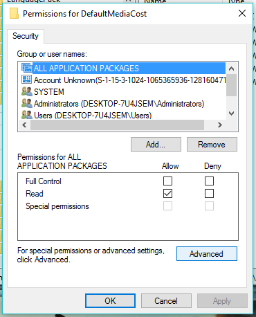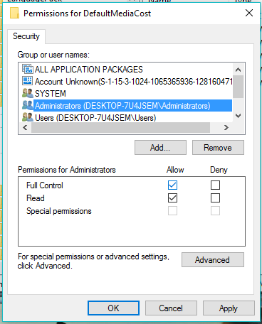 Now, in Advanced Security Settings for DefaultMediaCost, tick the