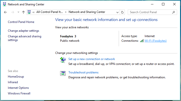 - Go to Network and Sharing Center .