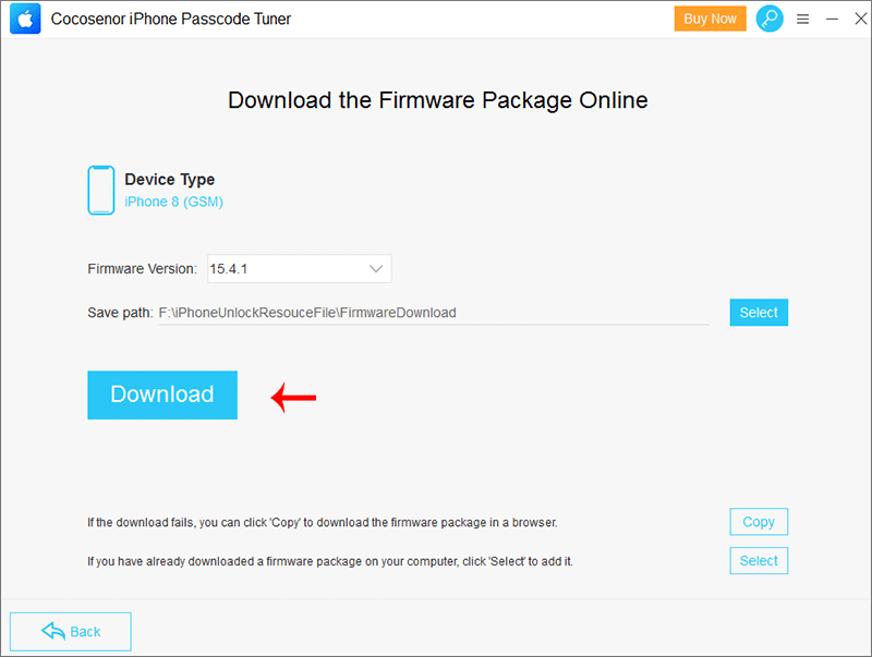 Step 4: The latest iOS firmware package is required to unlock the iPhone. Click on Download to get it.