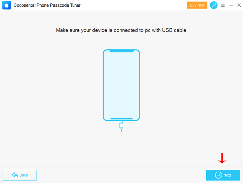 Step 3: Connect your device to a Windows computer and click on Next to get iPhone details.