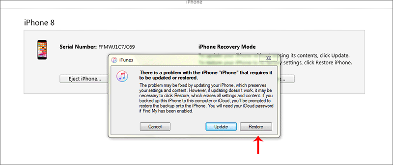 Step 2: Click the Restore option on iTunes and the Restore and Update option to erase all of your media and other data on the iPhone. After that, you just need to wait for the process to finish.