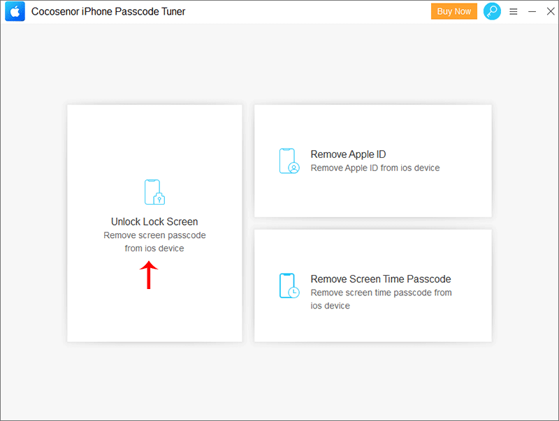 Step 1: Get Cocosenor iPhone Passcode Tuner downloaded and installed on your Windows computer. Double-click to open it after the installation. You can see Unlock Lock Screen option on the main interface. Click here to remove the passcode lock from your unavailable iPhone.