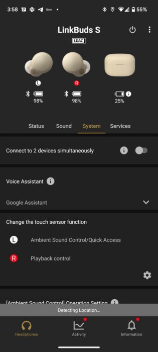 The System tab houses the option to enable multi-point connectivity and the option to edit the touch controls. It also contains the “Determine Optimal Earbud Tips” option to test if you’re wearing the right size of ear tips for your ears. The WF-LS900N also supports Spotify tap, where you can double-tap one side of the earbud to quickly start playing music on Spotify.