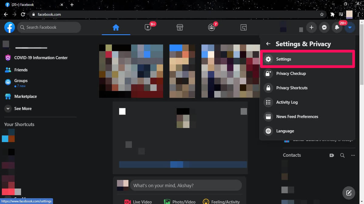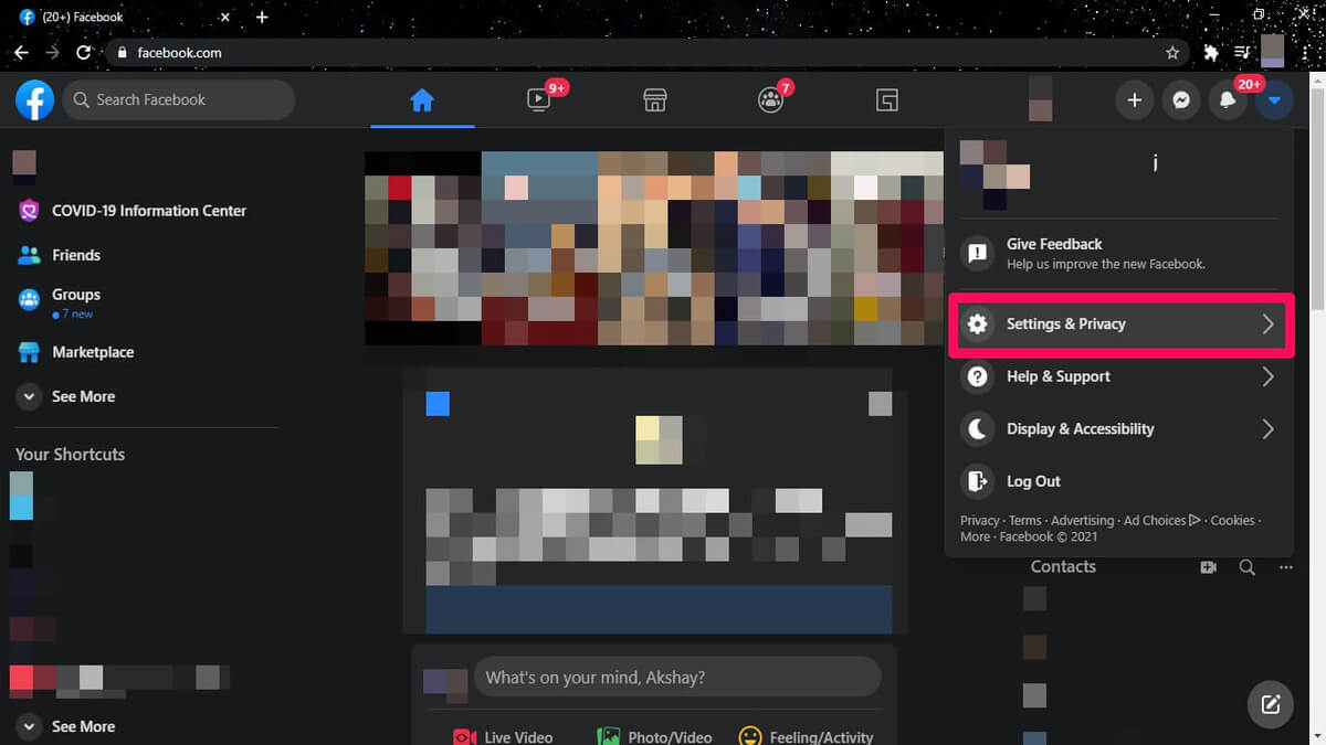 Open Facebook and click on “Settings & Privacy” from the top right corner of your screen.