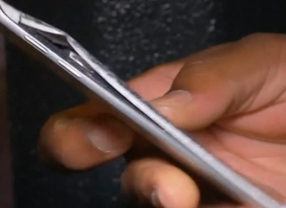 Below are the pictures of his Samsung phone that shows a smashed screen and a big dent: