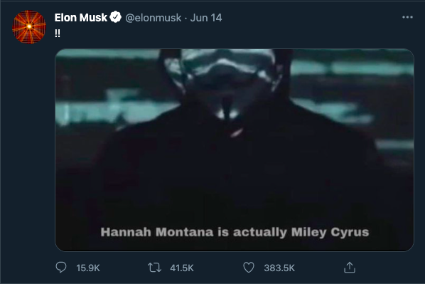 Elon Musk received a threat from the Anonymous hacker group who termed him as “a narcissistic rich dude who is desperate for attention”. In response, Elon Musk mocked the hackers’ group by posting a meme on his favorite social media website Twitter. He shared an image of a man wearing the Guy Fawkes mask and wrote “Miley Cyrus is Hannah Montana”. Mocking the Anonymous group is nothing short of inviting trouble but he’s Elon Musk after all.