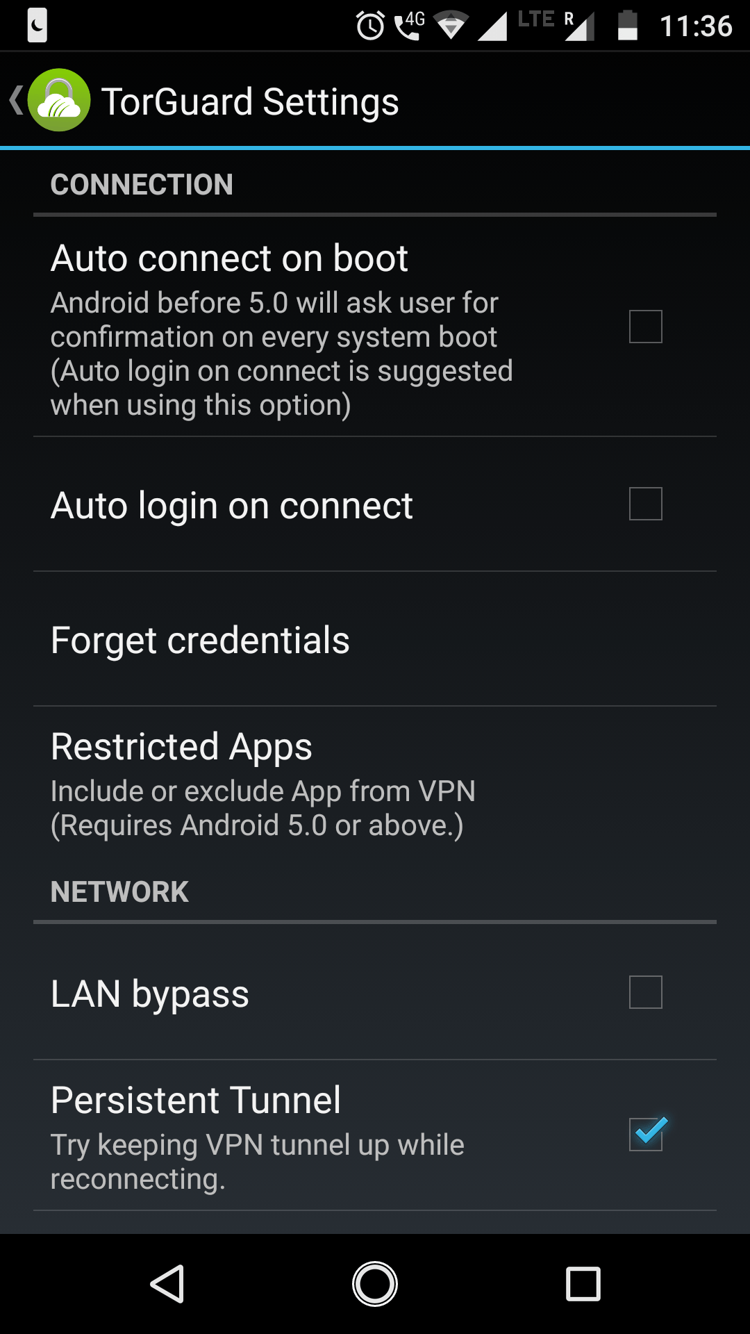 Another thing I noticed during my TorGaurd review is that the TorGuard Android app doesn’t allow you to change any settings if you’re connected to a VPN server. To make any changes, you’ll have to disconnect first.