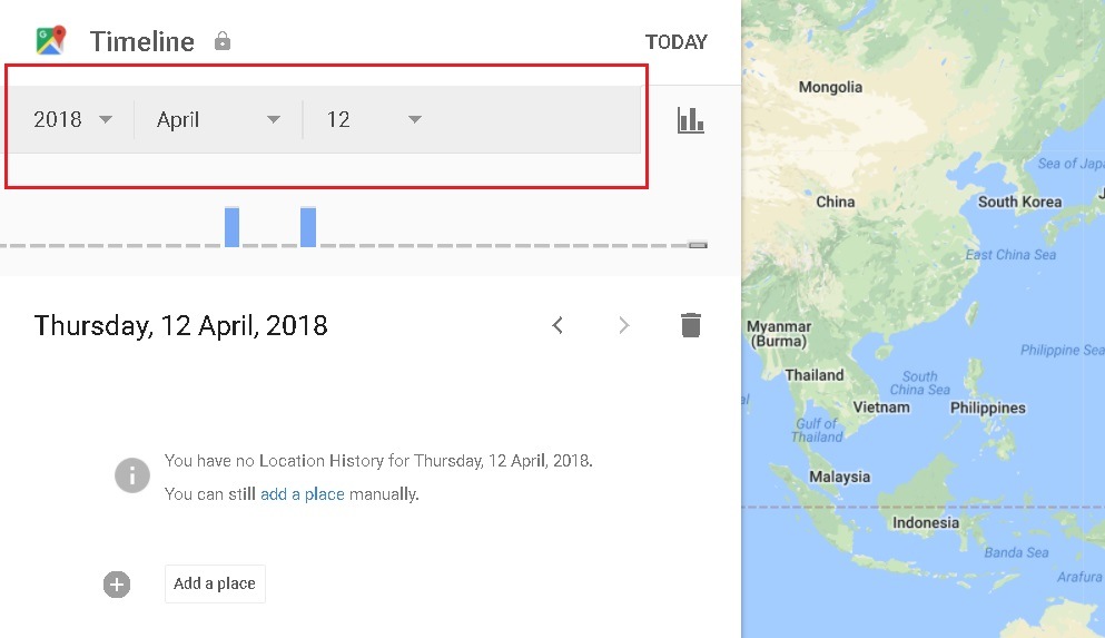 3. You can set the date, month, and year to see your location history for the day when you lost your Android.