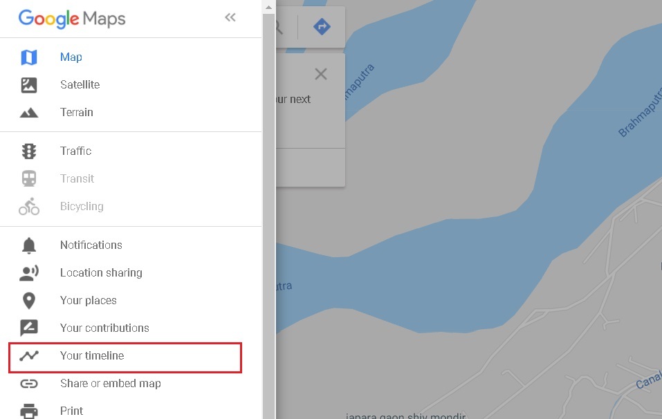 2. Click on the menu icon in the upper left corner and select Your Timeline .