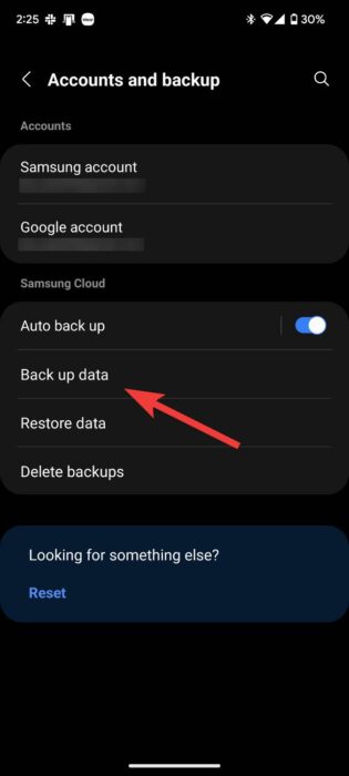1. Back up all your watch data by opening the Wearable app on your phone and going to Watch Settings > Accounts and Backup > Back up data.
