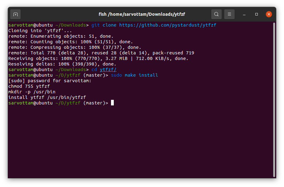 The easiest way to get ytfzf on any OS is first by cloning the repository and then installing with the Makefile.