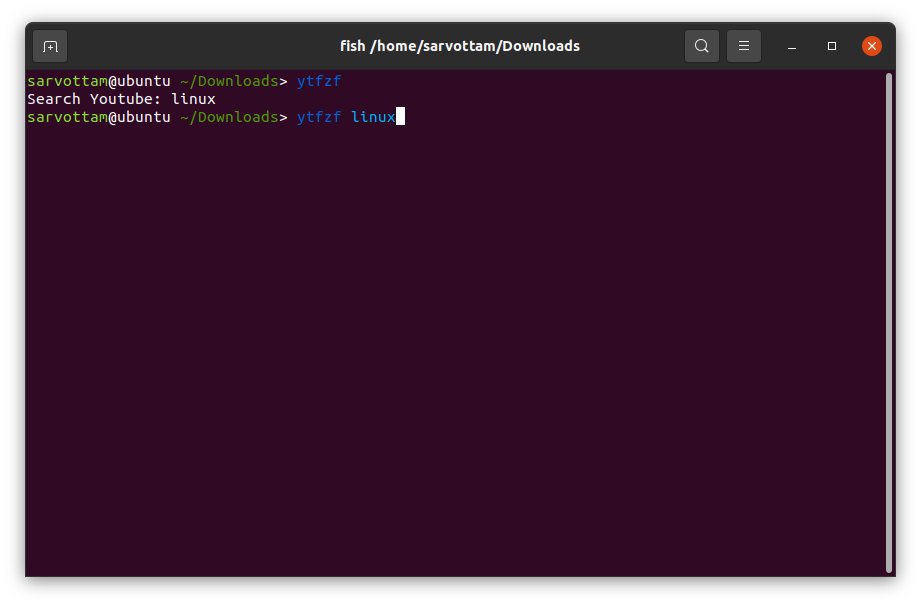 Once you properly install ytfzf, you can start searching for YouTube videos by running