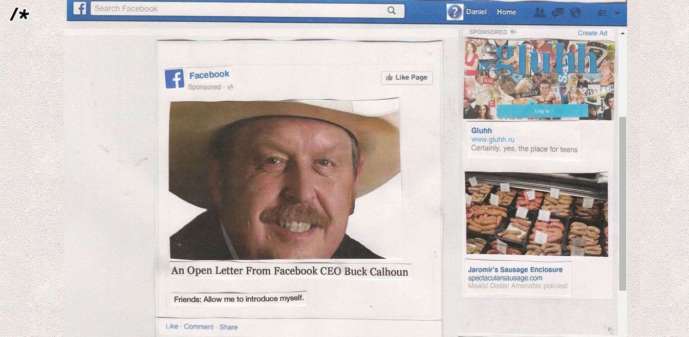 Kolitz spent a lot of time creating this Facebook parody and worked it just like another art and craft project with the help of paper, gluestick, scissors etc. He scanned each image and handed it over to Sam Lavigne of Useless Press for printing.