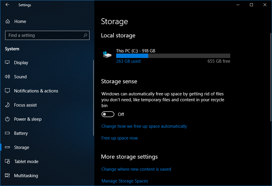Remember the Disk Cleanup utility, it’s used to delete unwanted stuff in Windows. After installing the April 2018 Update, Settings app shows an option called Free up space now. It does the same thing as the disk cleanup tool which is still present. Go to Settings > System > Storage to access the feature.