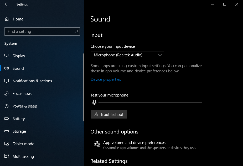 Microsoft has also added a new Sound page in Settings > System . This April 2018 Update feature lets you choose audio output and input devices for the system and a host of other customizations and troubleshooting options. In the App volume and device preferences section, you can change the volume, as well as, input and output devices for individual apps.