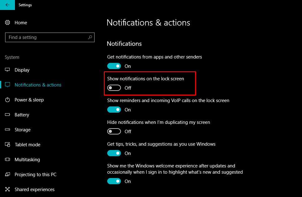 You can see notifications when your Windows PC is locked. However, your privacy cover could be blown if someone else sees them. To prevent this, turn off the toggle button that says Show notifications on the lock screen .