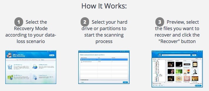 Each scanning option in this popular data recovery tool is built as a wizard to guide you at every step and help you get the best results. The complete data recovery process consists of three steps.