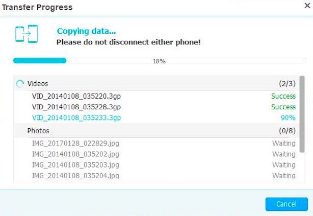 After choosing the required content that needed to be copied and hitting the Start Transfer button, the data transfer began. It took few minutes to complete the process without any error.