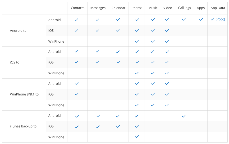 Just in case you’re wondering what kind of data I can transfer from one phone to another, take a look at this compatibility chart:
